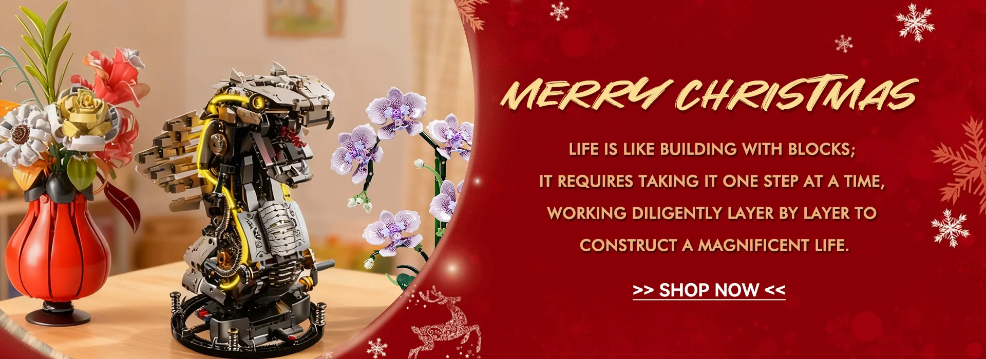 MOC Wreath Flower Plant Christmas New Year Creative Decoration Ornaments Assembled Small Particle Building Block Toy Kids Gift